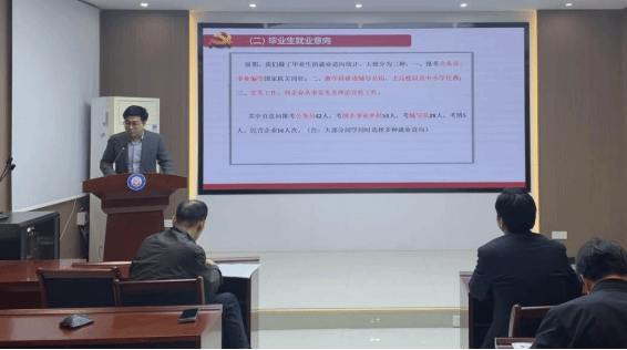 学院研究生事情办公室主任蔡明广首先汇报了学院结业生的基本信息及就业去向。。。。。。 。。2024届的87名应届结业生的就业意向主要分为三类:一是报考公务员或事业单位;;;;;;;;二是进入教育或科研领域,,,,,,,包括思政课西席和向导员职位;;;;;;;;三是加入企业党务及理论宣传事情。。。。。。 。。蔡明广还详细剖析了目今高校的就业形势和现在结业生的就业情形,,,,,,,并从就业事情的目的、战略、增强就业教育和步队建设等方面举行了详细汇报。。。。。。 。。