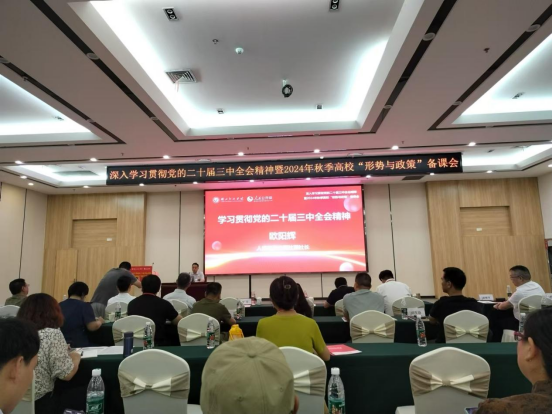 (通讯员 陈永贵)9月7日,,,,,由人民网、湖北经济学院、文华在线团结举行的深入学习贯彻党的二十届三中全会精神暨2024年秋季高校“形势与政策”备课会在湖北经济学院笃行楼一号报告厅举行,,,,,我院院长曹胜亮教授,,,,,以及“形势与政策”课程专任西席操菊华、陈永贵、邱峰、庄芩加入了备课会。。。。。