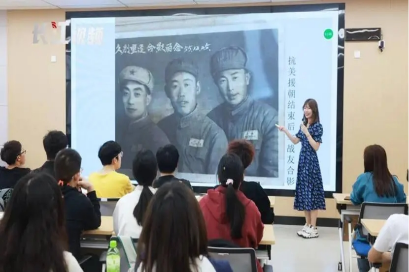 “要资助刚进入校园的大学生找到人生目的,,,,,,指导他们作育完善的人格,,,,,,在推许专业知识的天下让学生保有感性和爱的能力,,,,,,是每一位思政先生的使命”,,,,,,崔晋文先生这样说。。。。。。。。学生不但都是历史的传承者,,,,,,更是红色事迹的讲述者。。。。。。。。2021年,,,,,,在学院呼吁讲党史的招呼下,,,,,,崔晋文先生在《理想信心》这一章节中讲述了她爷爷的故事,,,,,,以后,,,,,,武汉工程大学2000余名学生通过崔洪祥义士事迹、斑驳的奖章、褪色的字迹,,,,,,触摸到了课本之外的滚烫历史。。。。。。。。
