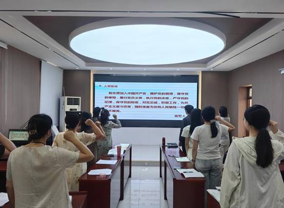 首先,,,,,,,兰洁同志向导全体党员重温入党誓词,,,,,,,查婷同志领学《新党章》第七章“党的纪律”,,,,,,,重点解读了第三十九条关于党的纪律主要职位的叙述,,,,,,,以及第四十条对党的纪律主要内容的阐释,,,,,,,资助党员们深刻熟悉党的纪律的严肃性与权威性。。。。。。。