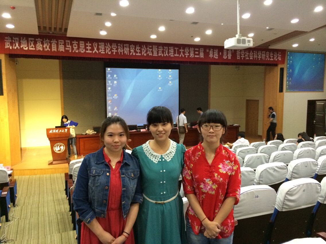 2014年6月,,,,,武汉地区高校首届马克思主义理论学科研究生论坛暨武汉理工大学第三届“卓越?思睿”哲学社会科学研究生论坛在武汉理工大学召开。。。。。。。。我院研究生代表加入了此次论坛。。。。。。。。