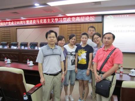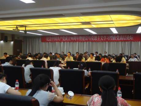 6月11日,,,,,,,“庆祝中国共产党建设90周年暨建设马克思主义学习型政党高层论坛”天下性学术聚会在华中师范大学逸夫国际聚会中心举行。。。。。院长舒先林教授应邀向导西席和研究生代表加入了聚会。。。。。此次论坛由中共湖北省委宣传部、湖北省社科联和华中师范大学团结举行。。。。。