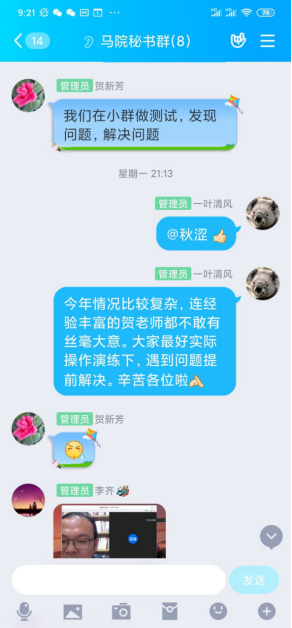 为切实做好本次在线视频答辩事情,,,,,,学院多次召开党政联席会,,,,,,讨论事情安排。。。。。建设答辩事情向导组,,,,,,协调院内资源,,,,,,增强与校外专家联系,,,,,,同时就答辩细节问题与研究生院商讨。。。。。学院建设了答辩秘书组,,,,,,由贺新芳、李齐等6位事情详尽、认真认真的优异年轻西席担当答辩秘书,,,,,,认真联系专家以及提供相关支持。。。。。为确保答辩顺遂举行,,,,,,各组秘书在正式答辩最先前,,,,,,认真组织答辩预演,,,,,,剖析答辩历程中可能泛起的问题及解决计划,,,,,,为答辩的顺遂举行打下了基础。。。。。
