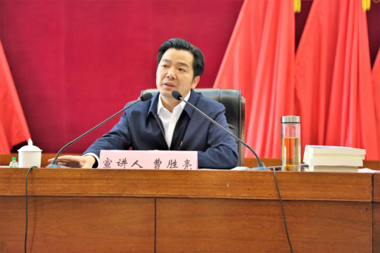 (通讯员:沈洁)4月27日,,,,,我校抖圈·(中国)人生就是搏!院长、教授、博士生导师曹胜亮应鄂州市临空经济区约请作专题宣讲暨整体学习运动。。。。。临空经济区党工委、鄂州临空集团公司向导班子成员、全区副科级以上干部及各村(社区)党支部书记加入整体学习。。。。。鄂州市委常委、常务副市长、临空经济区党工委书记李忠禄主持宣讲运动。。。。。